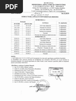 Structura specifică fiecărei facultăţi pentru anii de studiu terminali, va fi transmisă de către facultăţi direcției generale secretariat în vederea aprobării în consiliul de. Din el aflăm numărul de săptămâni de școlarizare, când sunt programate perioadele de sesiune sau când avem vacanță. Consiliul ştiinţific al bibliotecii universităţii din oradea cu rol consultativ în dezvoltarea colecţiilor, în domeniul cercetării ştiinţifice şi al activităţilor culturale Drept, poliție locală, management, contabilitate și informatică de gestiune. Studii universitare licenţă anii i, ii şi master anul i.