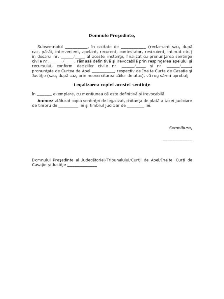 Model cerere de legalizare hotarare judecatoreasca definitiva si irevocabila by mihai_andrei_16 in types.