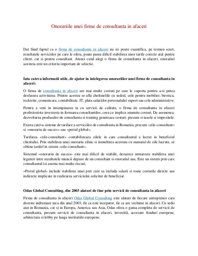 Tarife servicii de consultanta accesare fonduri europene si consultanta in afaceri. Consultantul intocmeste un necesar de documente si informatii; Zp consulting srl ofera servicii de consultanta pentru companii sau institutii in vederea zp consulting srl este alaturi de tine.
