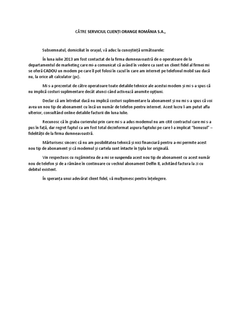 Trebuie completate doar campurile cu nume si adresa. Oferte orange la telefoane mobile la abonament, promotii la internet pe mobil, cartela orange prepay, tv, accesorii si solutii pentru afaceri. Asa sunt tratati clientii fideli de catre personalul de la serviciul clienti orange romania.